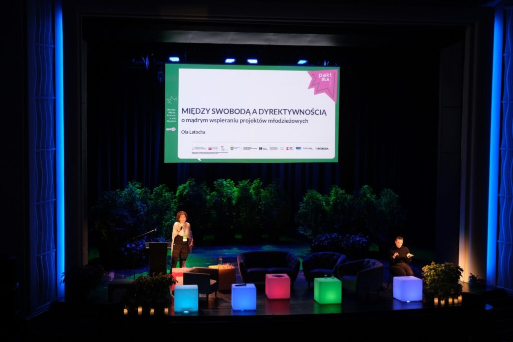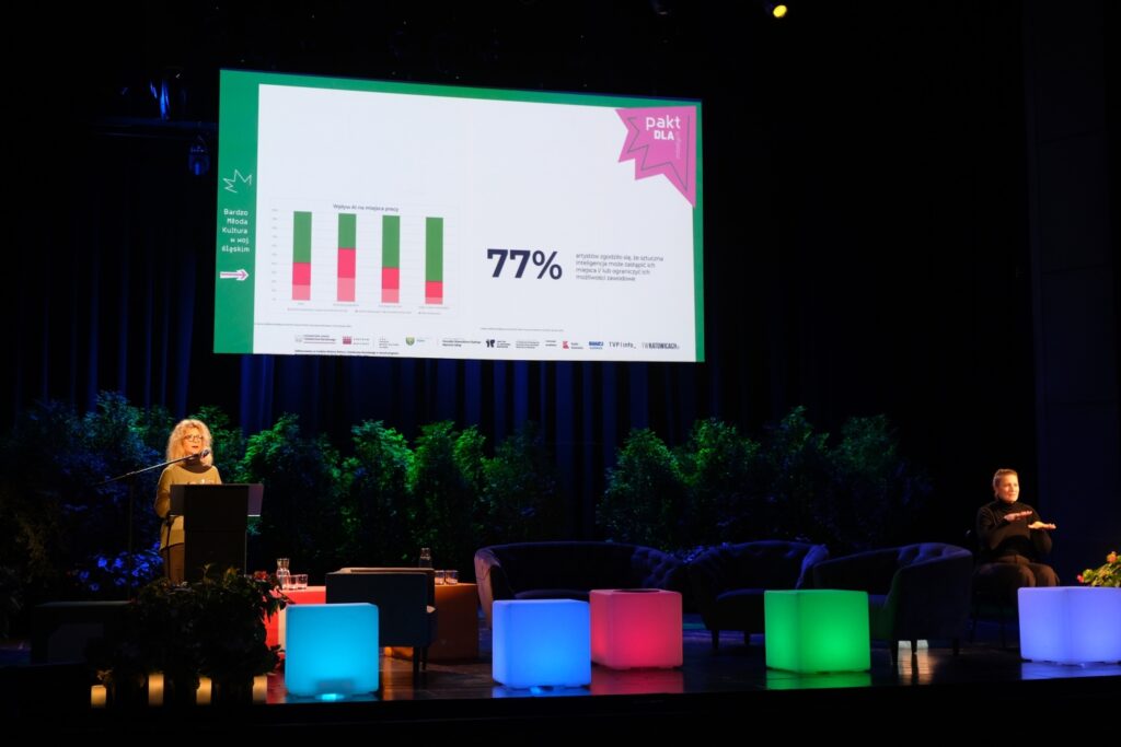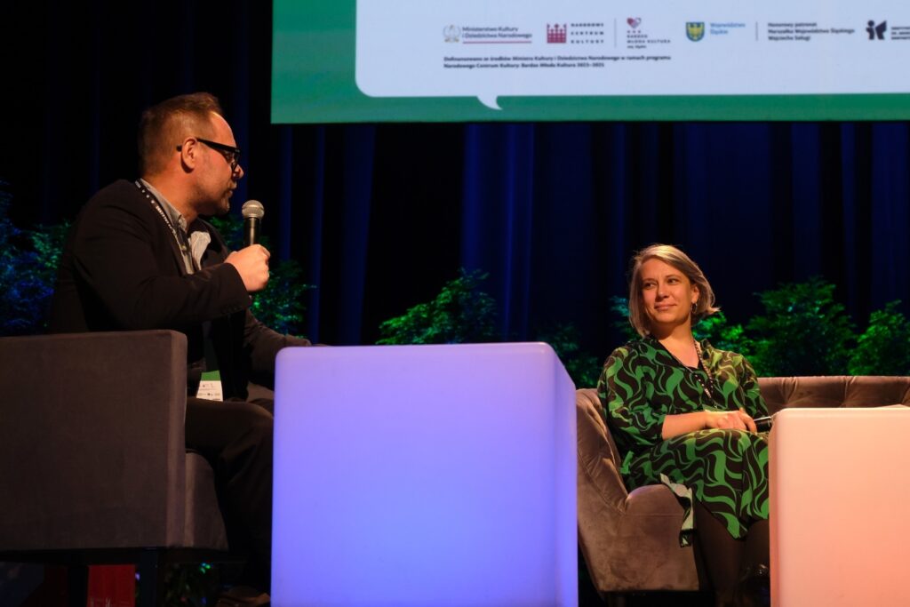 Drugi dzień konferencji rozpoczął się wystąpieniem Aleksandry Szymańskiej, dyrektorki Centrum Rozwoju Przemysłów Kreatywnych, która opowiedziała o przyszłości kultury w kontekście przemysłów kreatywnych, innowacji i nowych modeli współpracy z młodymi dorosłymi.