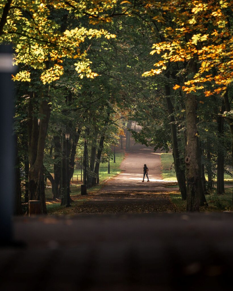 Spacer z moderną w tle